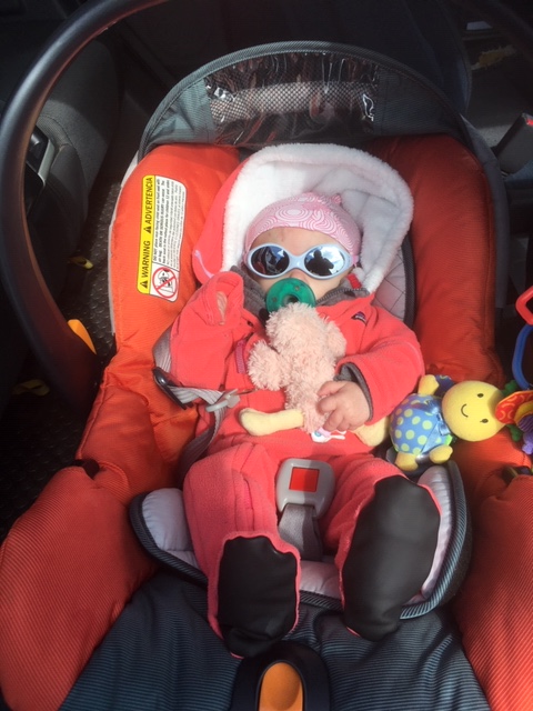 In terms of day to day life with June, she is one amazing little kiddo! She is a pretty chill baby and has been quite go-with-the flow this winter. We’ve had her out in the Chariot a bunch on cross country ski adventures and winter hikes in the baby Bjorn. She loves being outside and sports some killer sunglasses since she’s got some amazing (and sensitive) pale blue eyes. That sun and snow combo can be a lot on the peepers! We’ve recently discovered a possible milk protein allergy that may account for the difficulty in keeping milk down. Now that she is on some very broken down, lactose free formula, she is able to keep her bottles down much better… this was huge!!! Hopefully she’ll be able to put on some pounds at a quicker rate now. She is getting a lot of services to help her catch up a bit (OT, PT, Speech, and consults with The Montana School for the Deaf and Family Outreach). She giggles, smiles, snuggles, rolls, loves pee-a-boo, almost sits up, and is overall a calm little sweetheart!