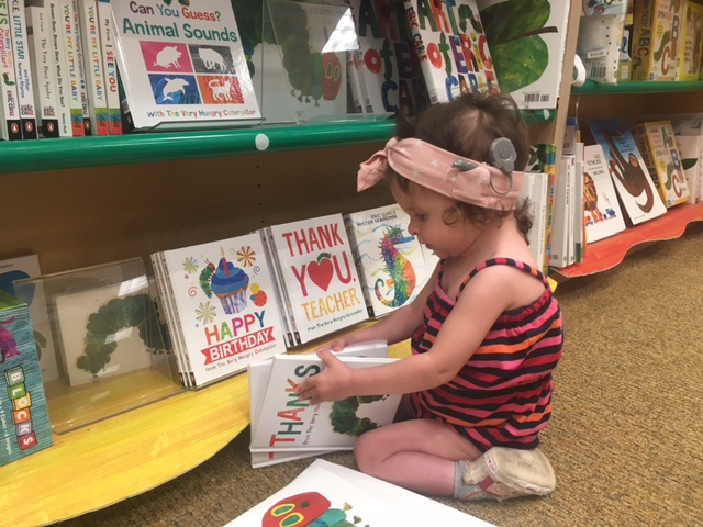 Now back to recovery mode and once the swelling and tenderness is down we’ll try for activation. Tentative date is August 27th. In terms of the right ear, we may have to wait awhile till we go ahead with that one. Poor girl has been through quite a bit and we need to get back on the eating/getting strong train instead of putting her through another surgery. We also need a solid plan from the hematology team before/if we proceed to the next ear. We already knew this but are reminded how tough and special this little girl is! She is not like every other case but instead directs her own path. We have to observe and follow her lead at times! Some things we’ve learned in the last hospital stay… statues scare the crap out of June and she is totally grasping sign language and did her first real expressive sign (signed “baby” when reading a favorite book)!